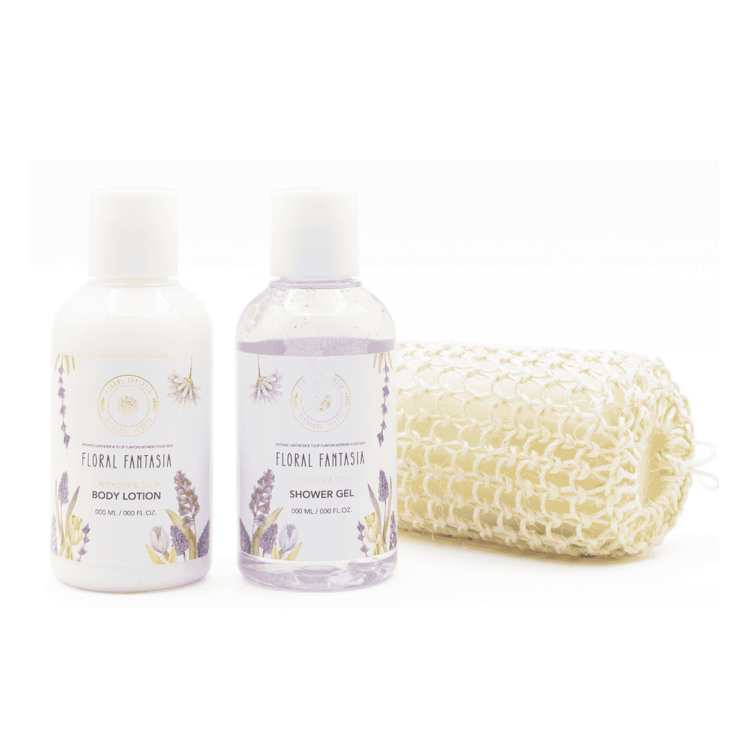 Este set de fantasía floral con delicado aroma está presentado en una elegante caja de regalo e incluye un gel de baño y una loción corporal de 100 ml, ambos perfectos para acompañar a los viajeros, además de una esponja de sisal que aporta un toque natural al ritual de cuidado personal.